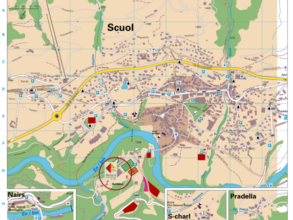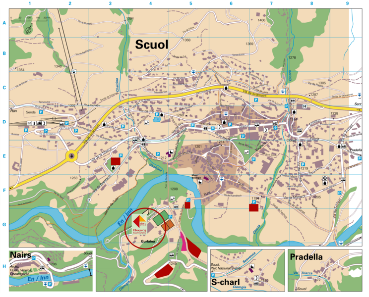 Gurlainabrücke En En Chantröven Gurlaina Festzelt BHF Scuol-Tarasp Gurlaina Via da Gurlaina Punt Ausstellung EBexpo‘23 Scuol Anfahrt von Scuol